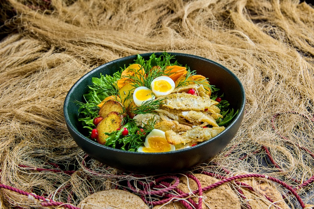 Meritint praekartuli ja värske salatiga.