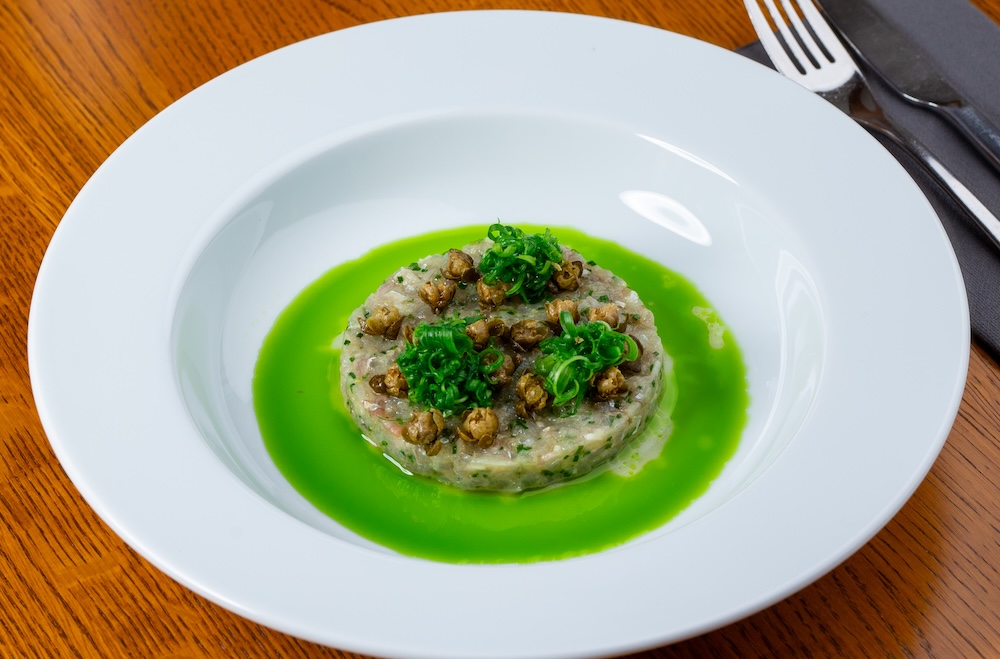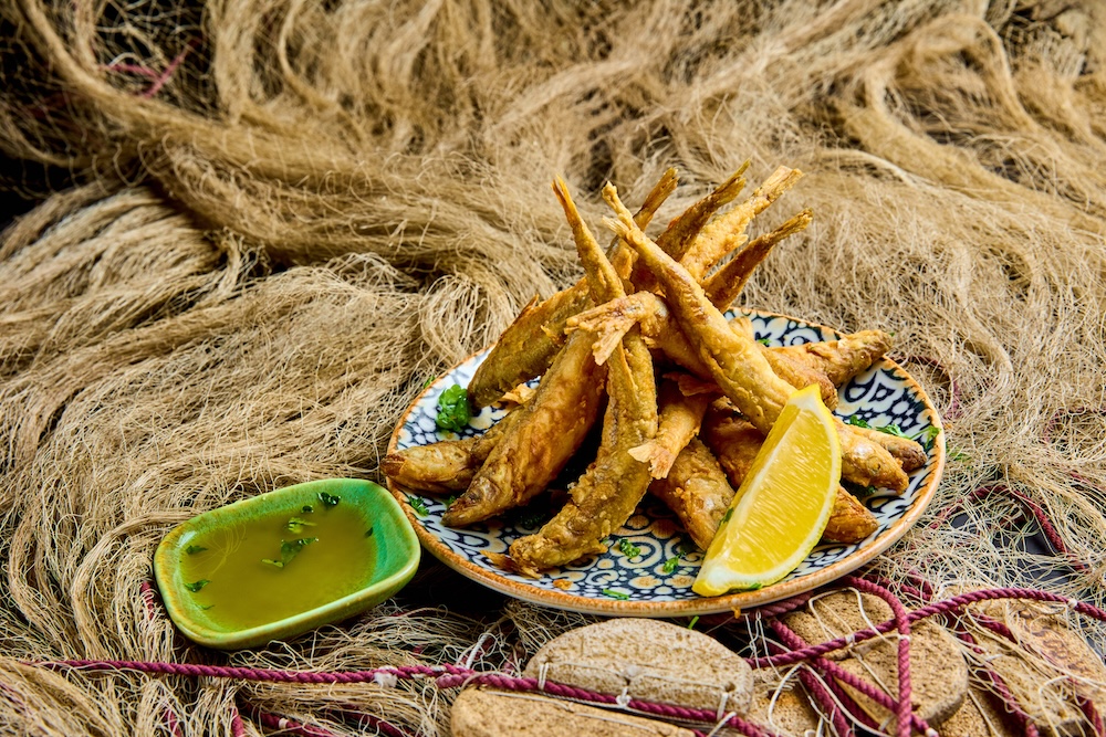 Krõbe meritint – frititud polenta, salsa verde, sinepine kurk, parmesan, bonito helbed.